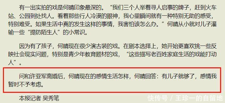 也因为有了女儿,何晴莫得筹商过再婚。