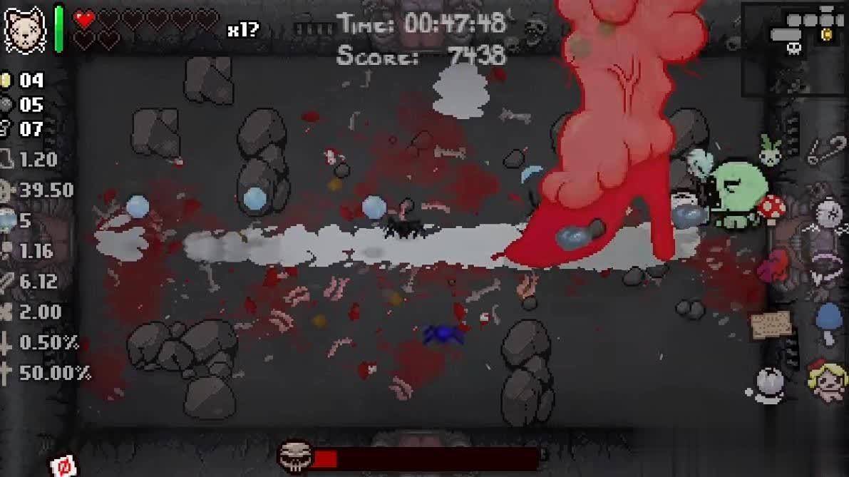 《以撒的鸠合》游戏里的枪弹即是以撒的眼泪,有的谈具会让以撒哭的更狠恶(攻速高潮,弹速高潮,攻击高潮),有的会让眼泪替换成血。