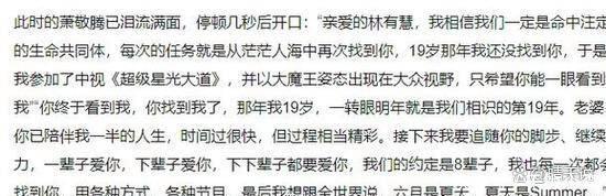 从那时起,萧敬腾在不同的镜头前直言:“我真的十分爱她”,并在个东说念主酬酢媒体的主页上签名写下了17次“我爱林有慧”。