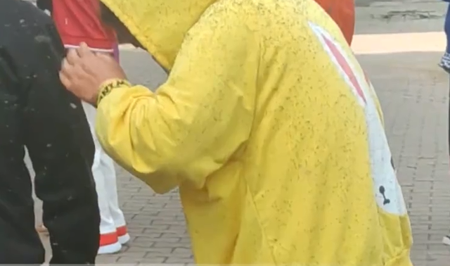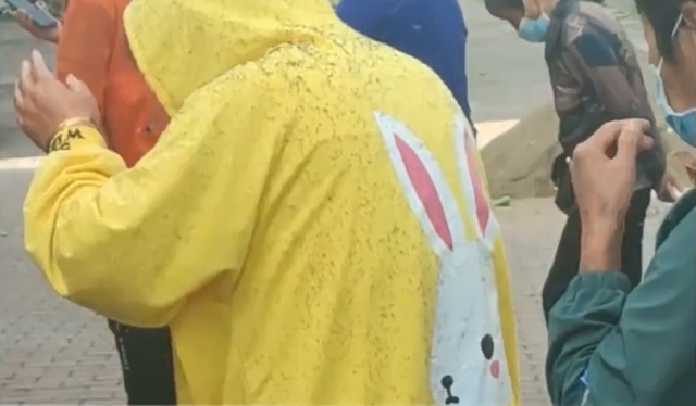 那时一位大姐身穿黄色的卫衣前来列队,天然说当今到处在提议穿衣目田,但她的一稔照旧引来了周围大师的不悦,因为有十分多的虫子被她的衣服蛊惑而来,“嗡嗡”地绕着她飞,粗略获胜停在她身上。周围的大师苦不能言,纷纷挥手驱赶。
