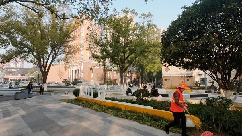 广场的左侧与远方,处处可见充满生存气味的平静剪影。稀稀拉拉的行东谈主或枯坐于树荫下的长椅之上,或打花牌,或打扑克牌,或下象棋,或馈赠着柔声交谈,阳光透过枝杈的瑕玷散落,在他们身上镀上一层蔼然的光晕,时光也仿佛在此刻变得拖拉而悠长。不远方,一辆袖珍电动车辆静静停放着,那是环卫职工的责任伙伴和代步器具,无声地融入这方世界,成为这幅生存画卷中一抹质朴的点缀。抬眼望去,左侧一栋栋高层住宅楼拔地而起,玻璃幕墙在阳光下熠熠生辉,显著地明示着这里是城市中一派充满炊火气的居住区域。