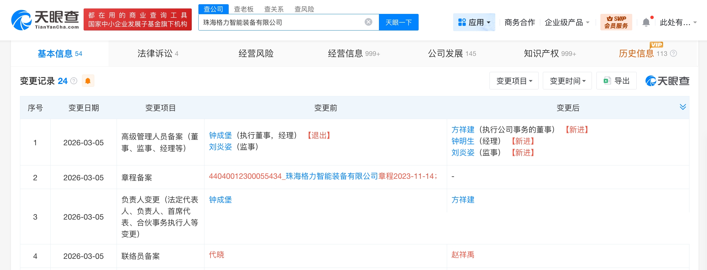每经AI快讯,天眼查工商信息显露,近日,珠海格力智能装备有限公司发生工商变更真人,钟成堡卸任法定代表东说念主、推论董事、司理,方祥建接任法定代表东说念主、推论公司事务的董事,钟明生接任司理。珠海格力智能装备有限公司建造于2015年9月,注册成本1亿元东说念主民币,筹画界限包括工业机器东说念主制造、智能基础制造装备制造、数控机床制造、软件开荒、储能工夫干事等。推进信息显露,该公司由格力电器(000651)全资抓股。